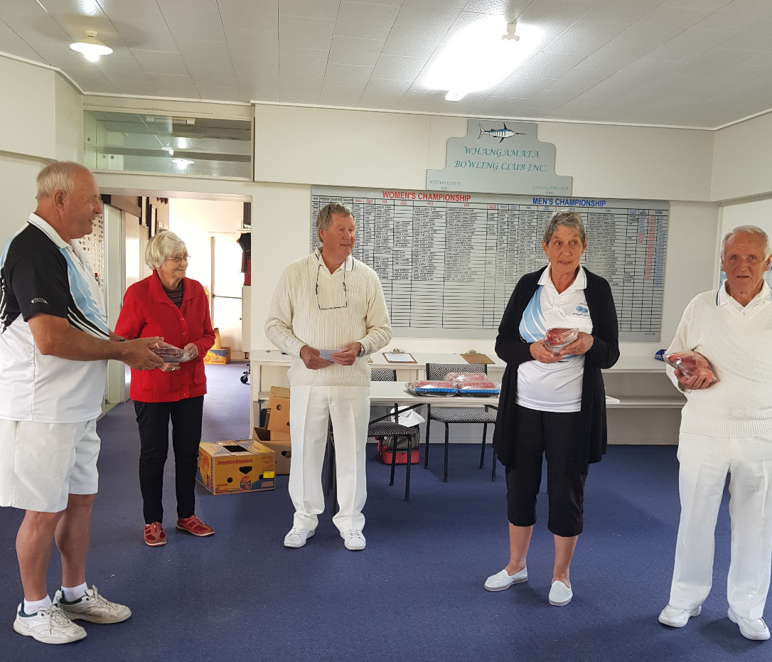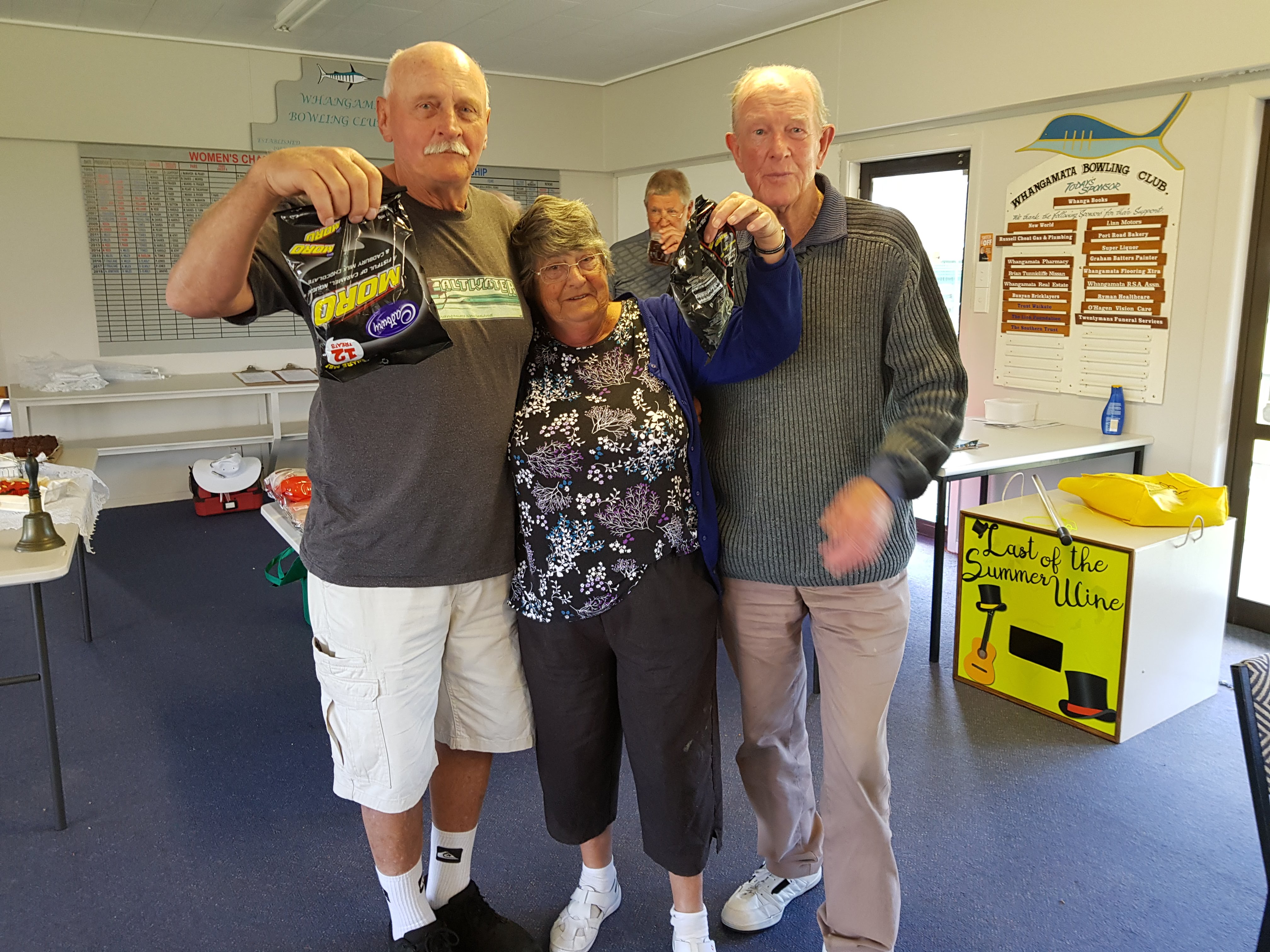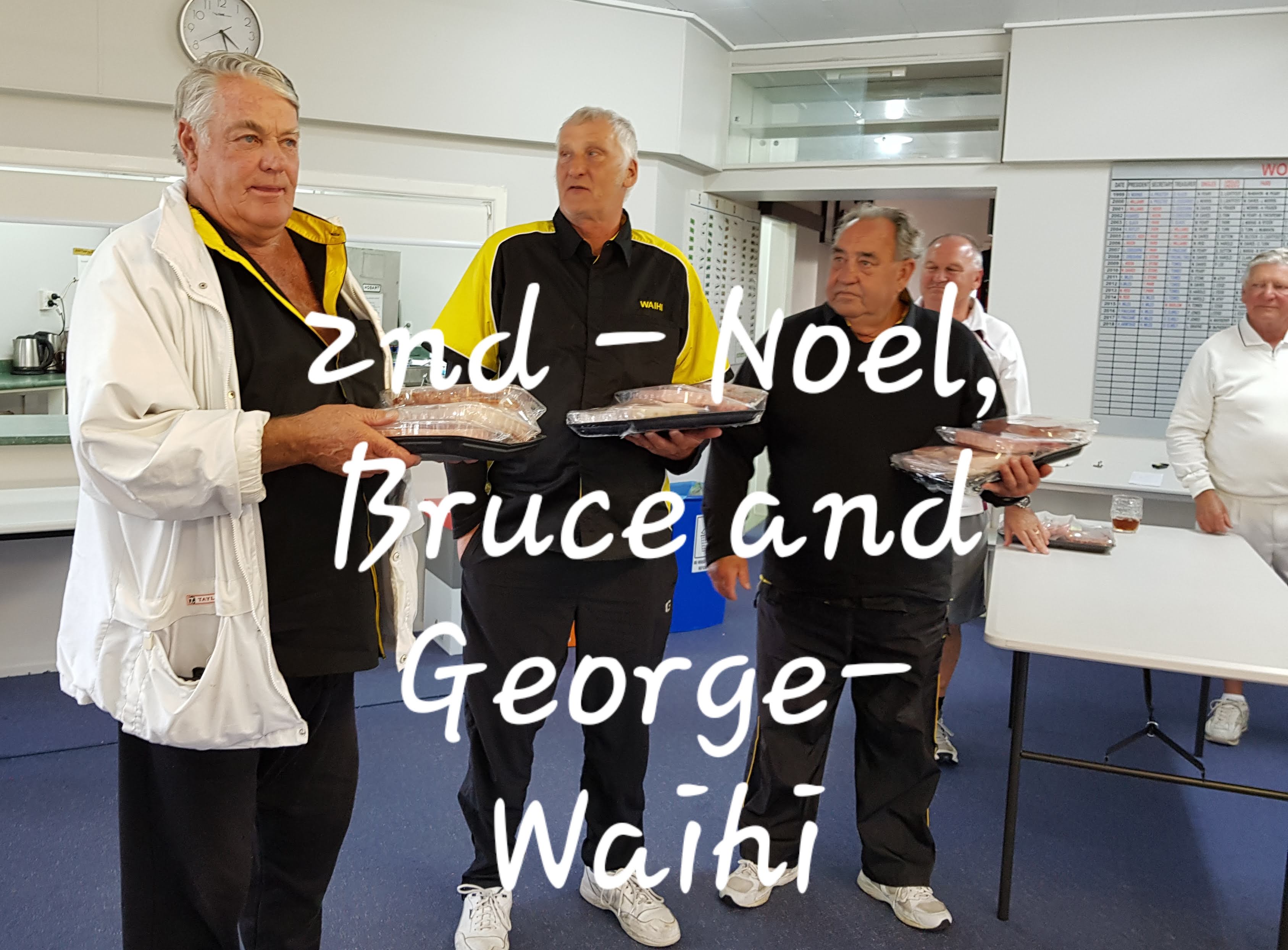 First overall for the day were the team of Dennis Matthews, Merv Fraser and Lynda Walker. Second for Omokoroa was Ray Nelson, Ross Harvwey and Paul Utting. Third, Ivan Hoare,Bob McKinnon and Dennis Turner.