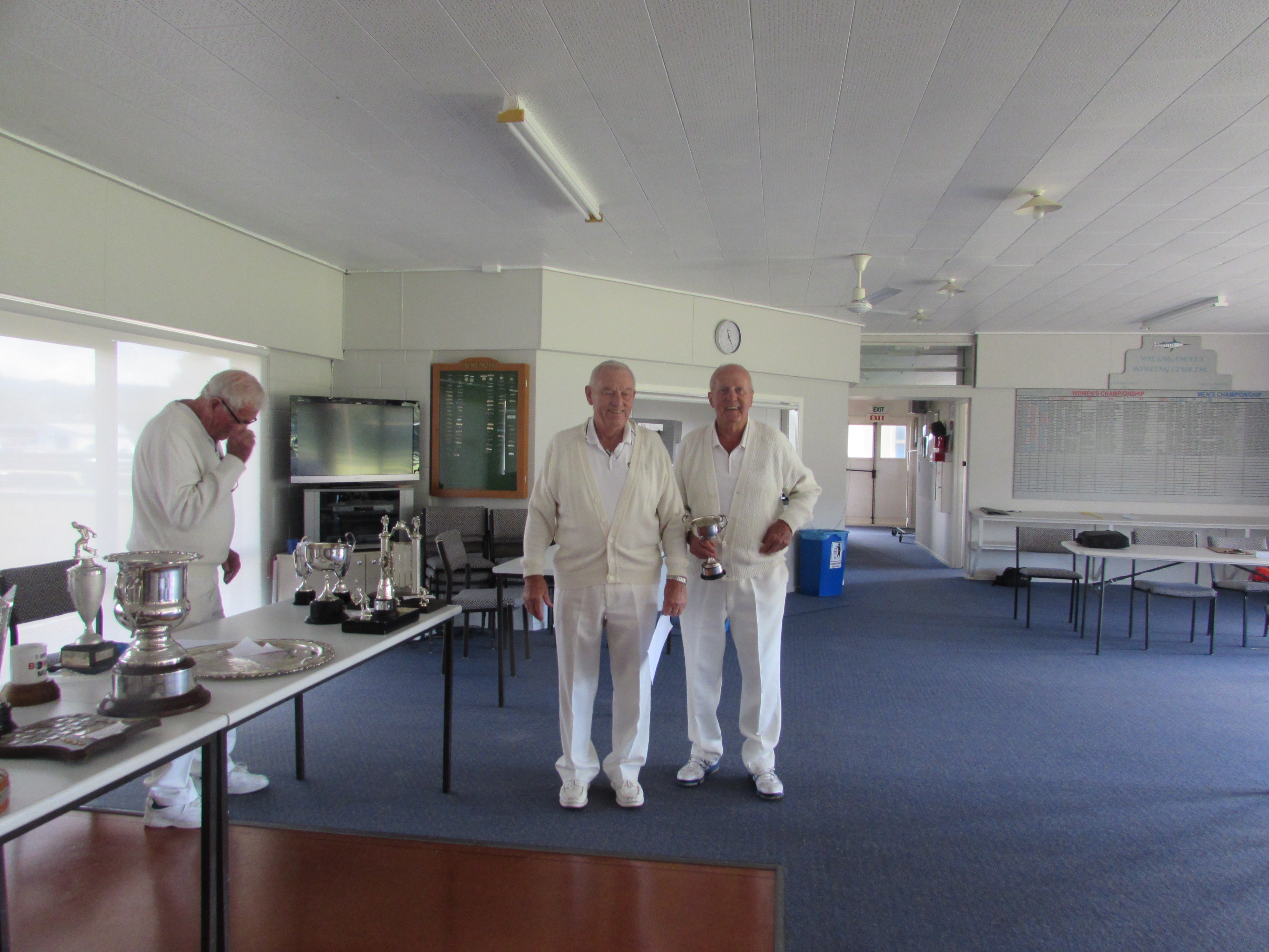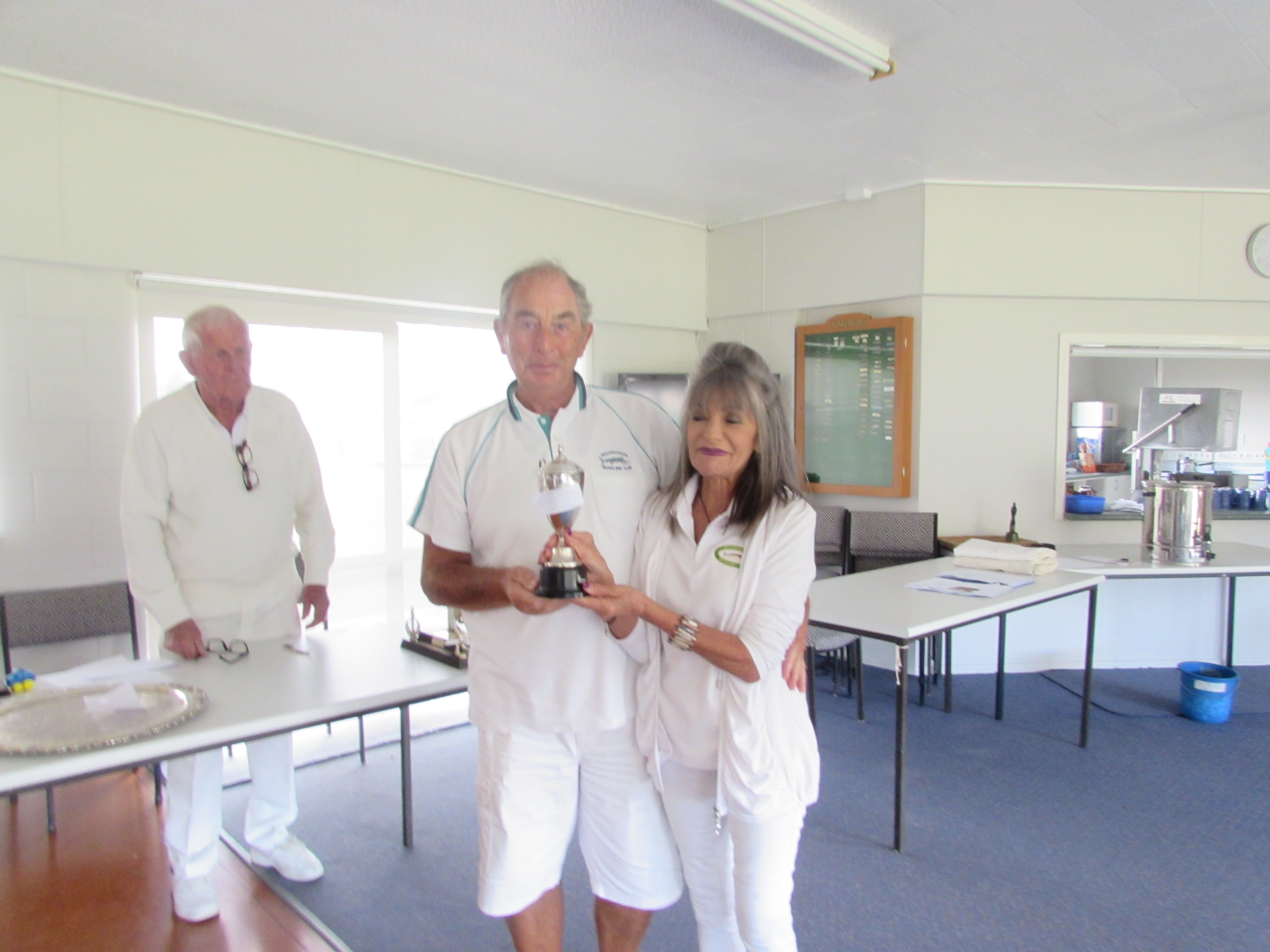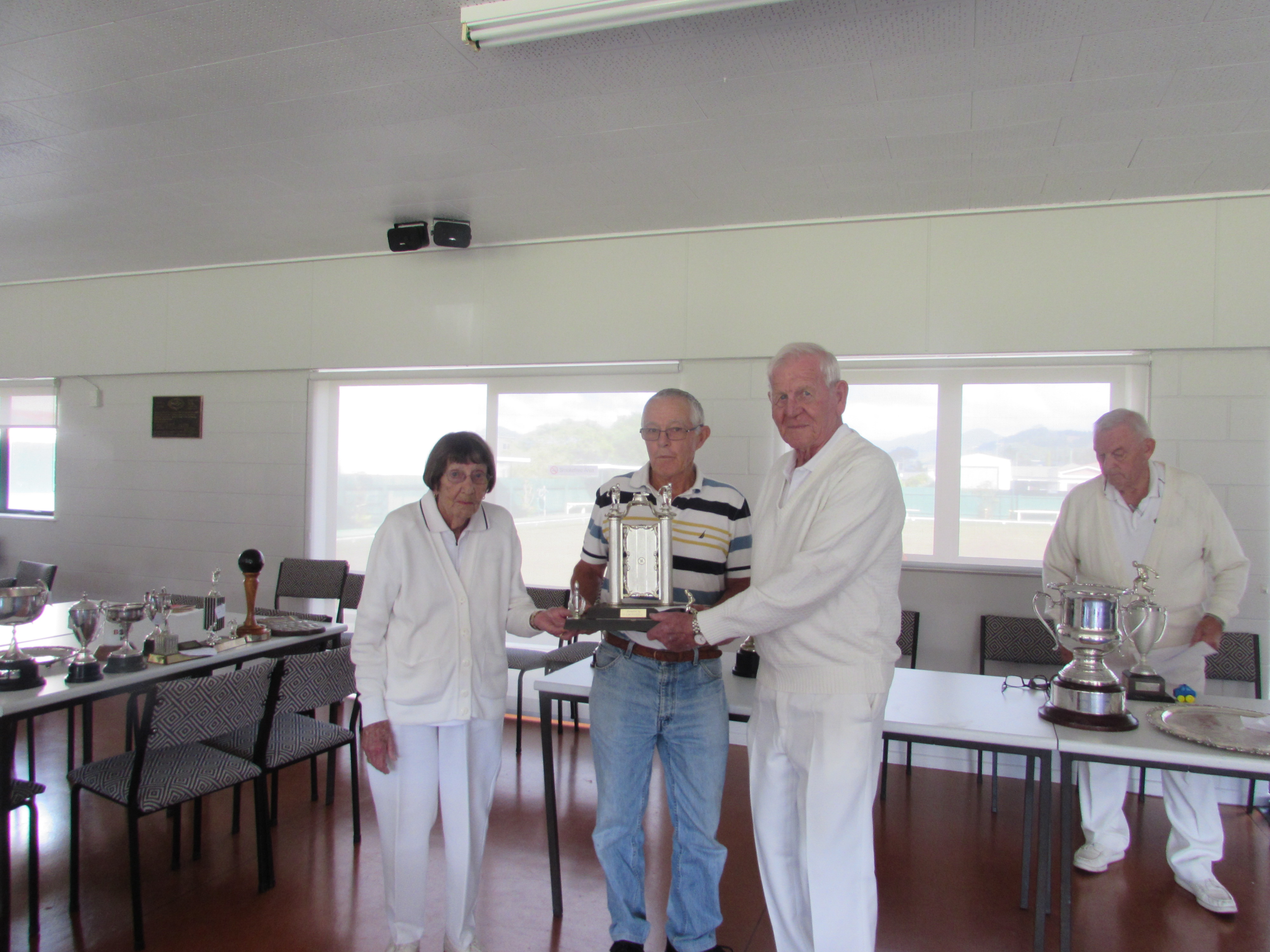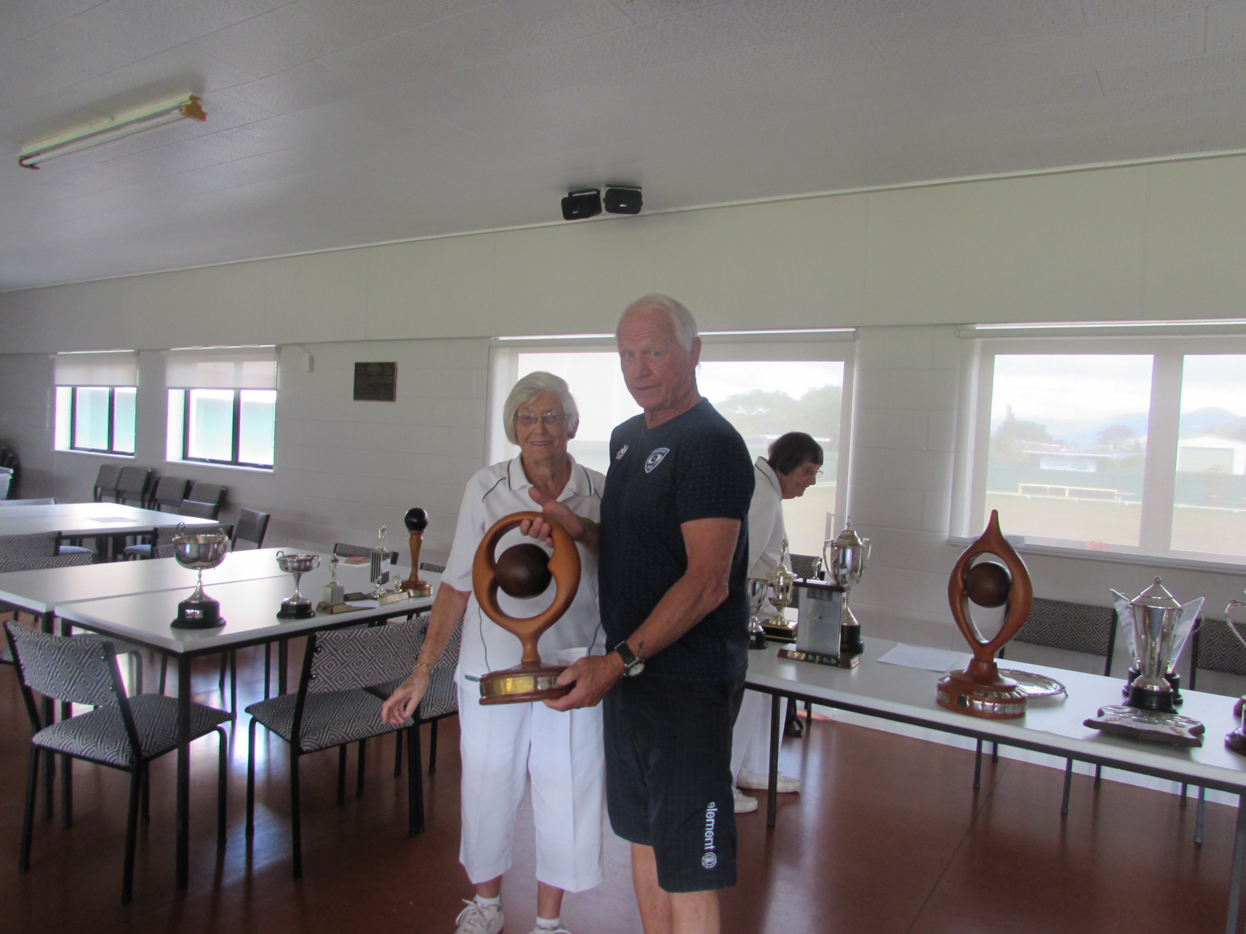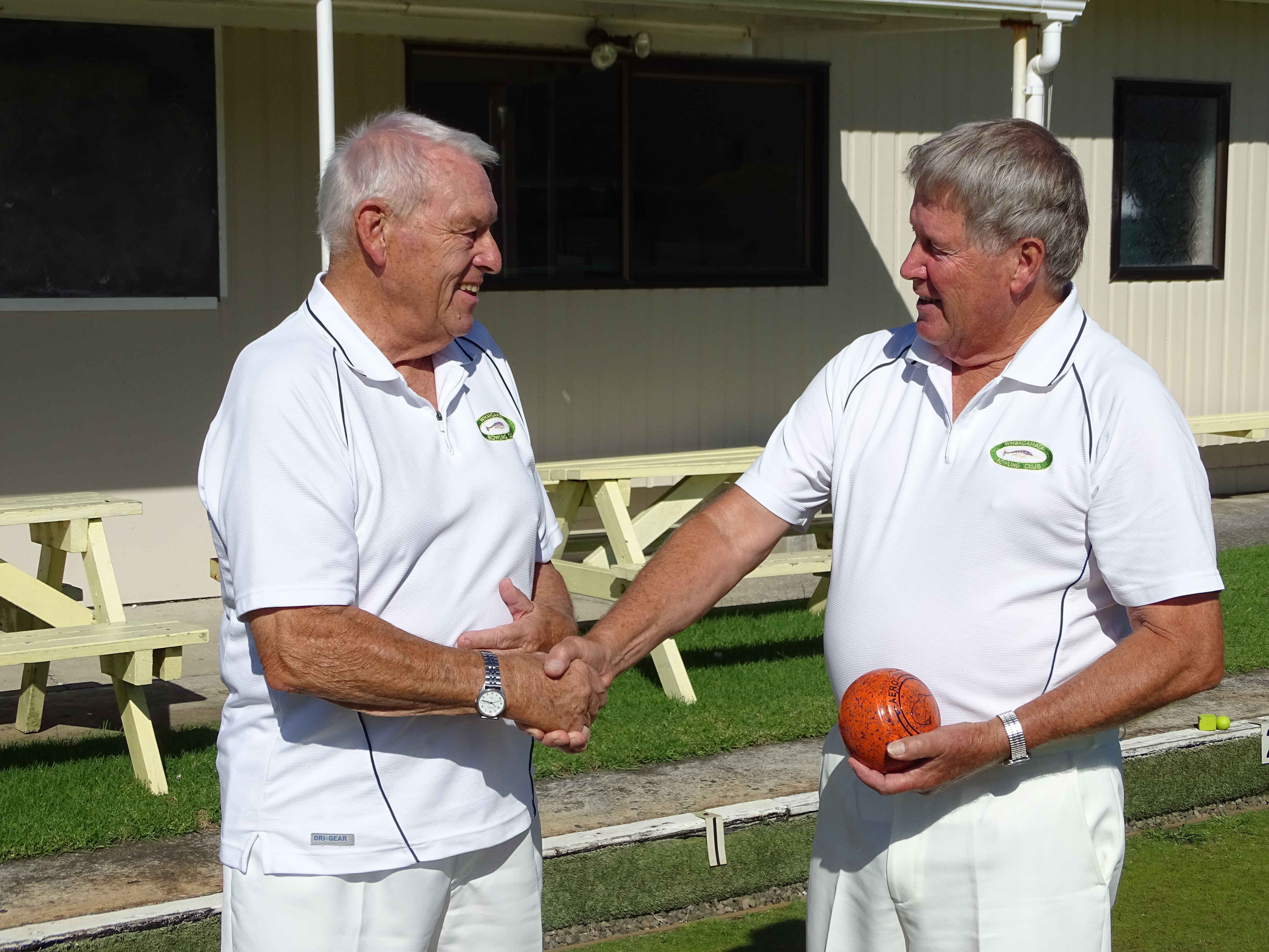 President Herb Armitage congratulates Graeme Thwaites, winner of the Thames Coromandel Champion of Champions singles division. Graeme is also our Clubs resident Coach.